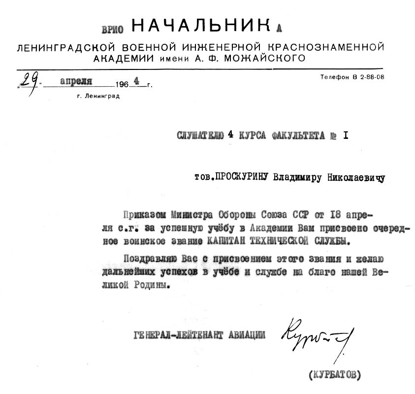 Во время учебы в Академии неожиданно пришел приказ