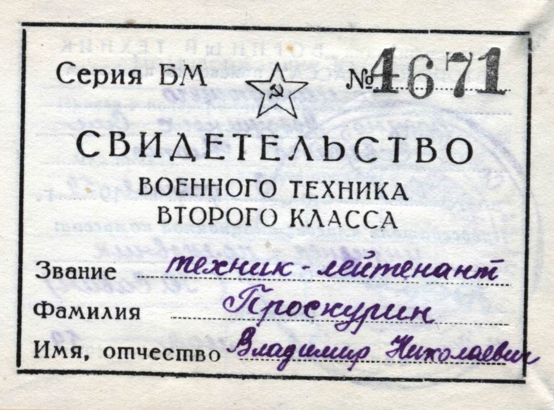 Фотографии Проскурина Владимира Николаевича. Документы