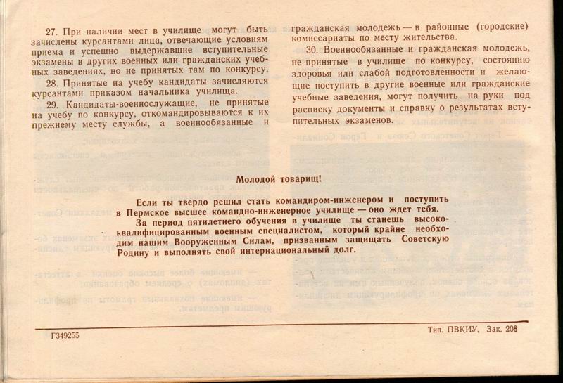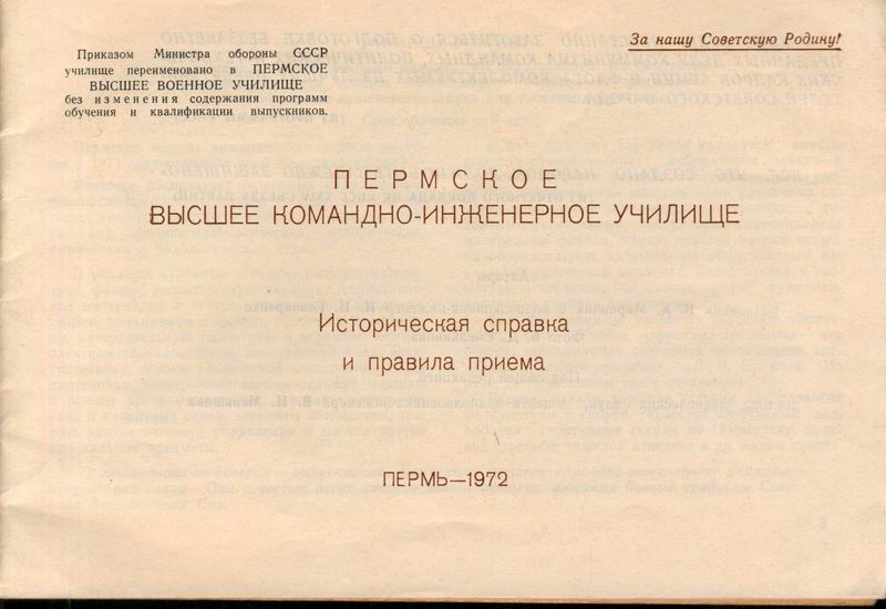 Для поступающих в пермское ВКИУ, 1972 год