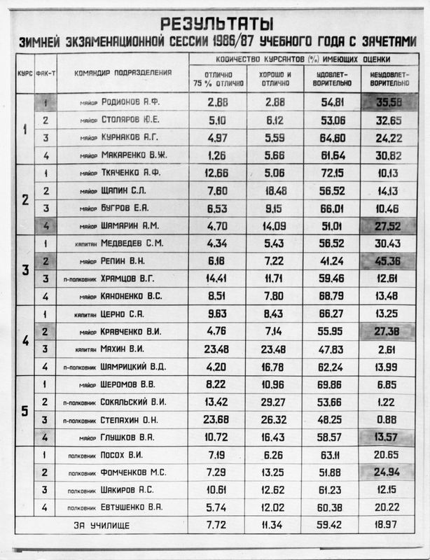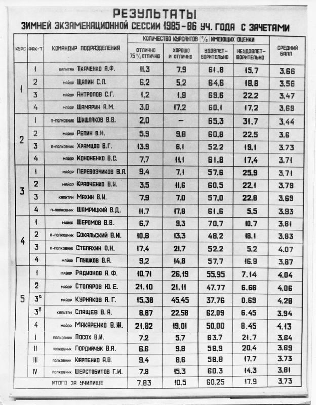Результаты зимней экзаменационной сессии 1985/1986 и 1986/1987 годов